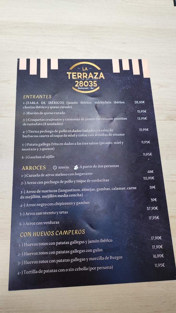 Introducing the menu at LATERRAZA28035, a delightful culinary gem nestled in Moncloa - Aravaca, Madrid. Renowned for its inviting atmosphere and exceptional service, this restaurant has quickly captivated locals and visitors alike. Guests rave about the exquisite offerings, particularly the tortillas, with variations that include a sumptuous truffle option. Reviewers consistently highlight the mouth-watering arroces and croquetas, making them must-tries for any food lover.